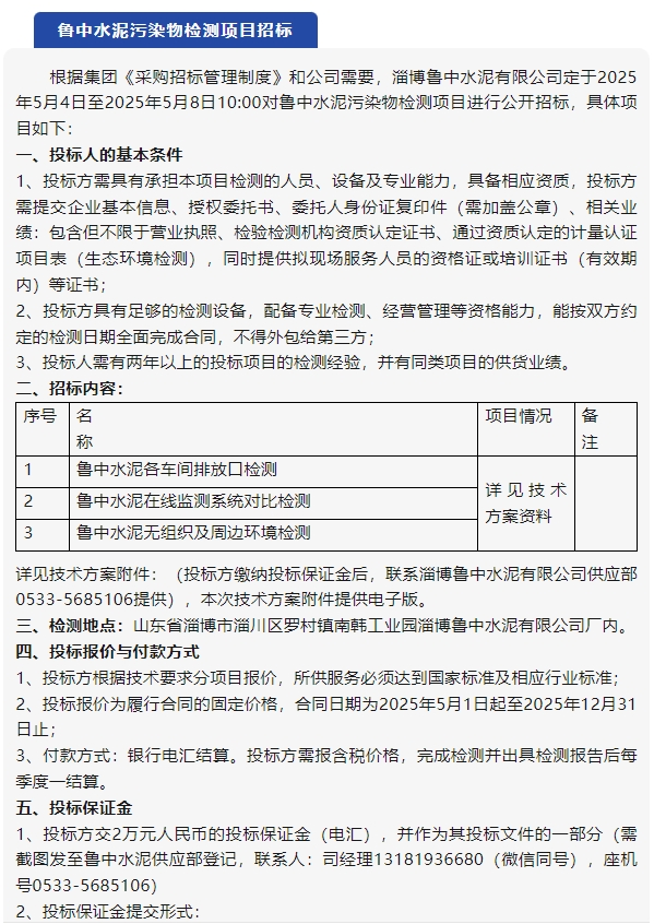 【招標公告】魯中水泥、重山思沃瑞
