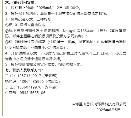 【招標公告】魯中水泥、重山思沃瑞