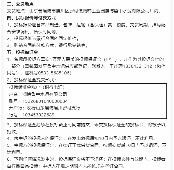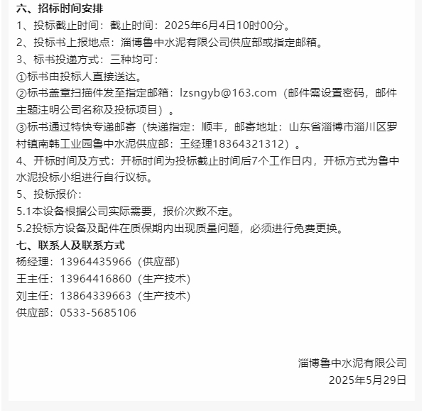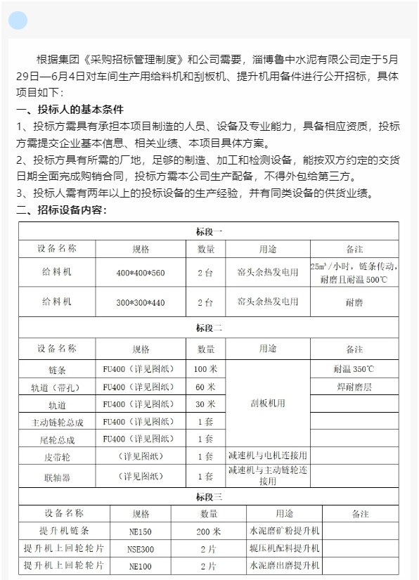 【招標公告】魯中水泥