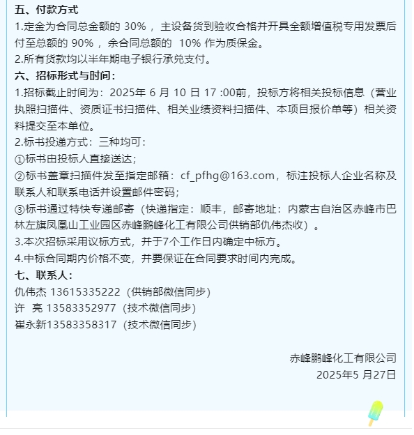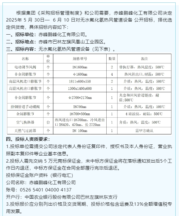 【招標公告】鵬峰化工