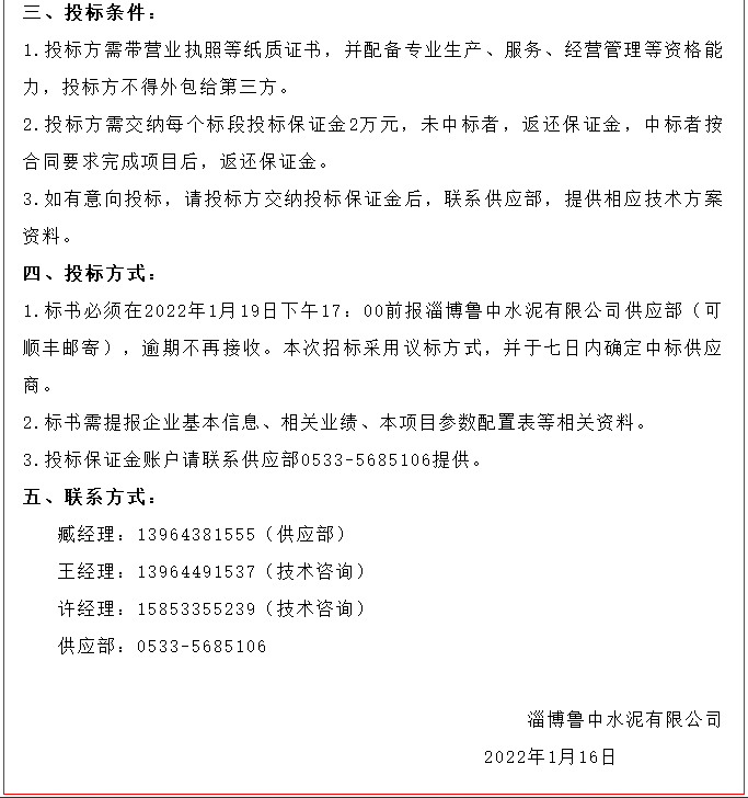【招標(biāo)公告】魯中水泥