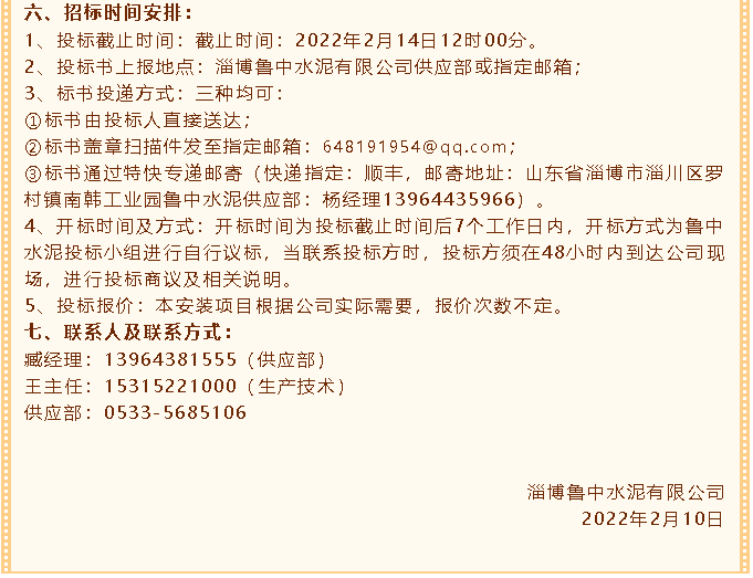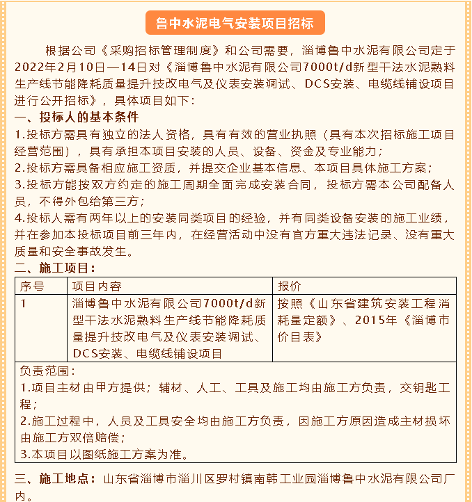 【招標(biāo)公告】魯中水泥