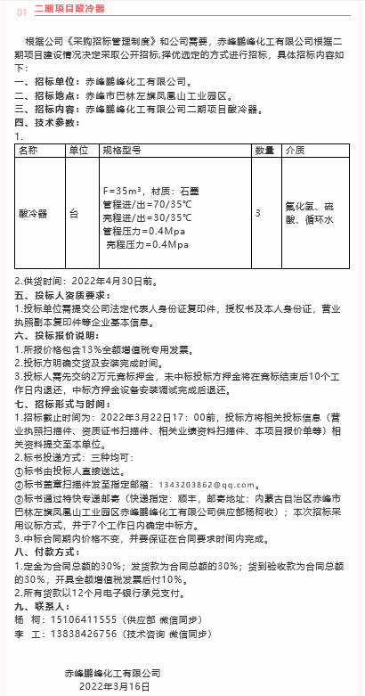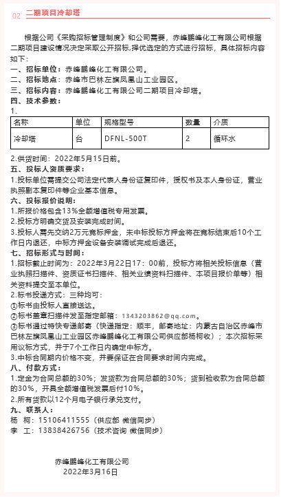 【招標(biāo)公告】 鵬峰化工