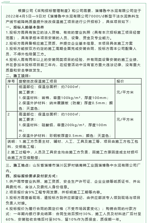 【招標公告】魯中水泥