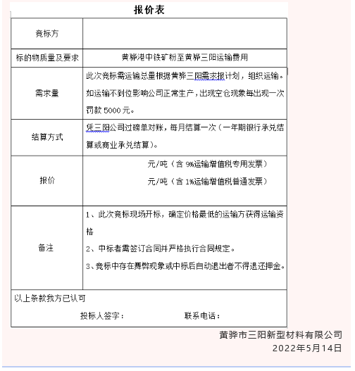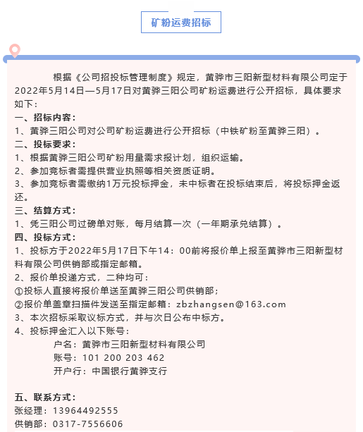 【招標公告】黃驊三陽粉煤灰、礦粉運費招標