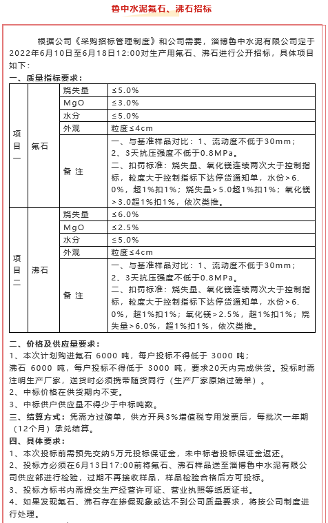【招標(biāo)公告】魯中水泥氣象監(jiān)測系統(tǒng)、氟石、沸石招標(biāo)