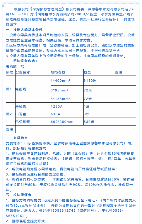 【招標(biāo)公告】魯中水泥