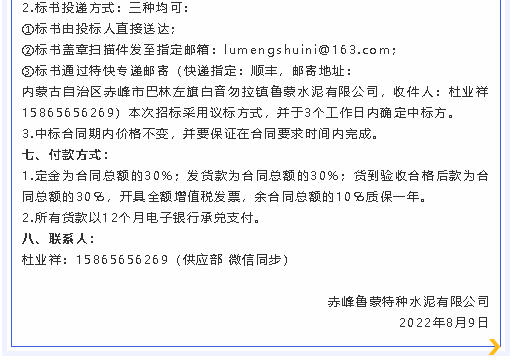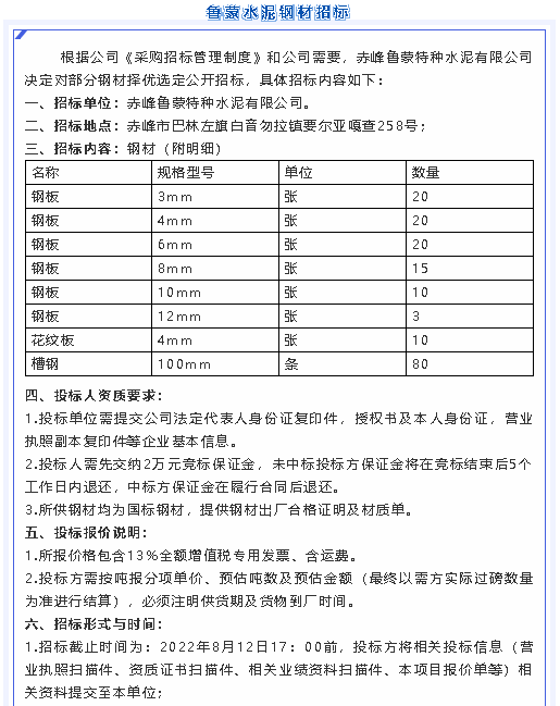 【招標(biāo)公告】魯蒙水泥