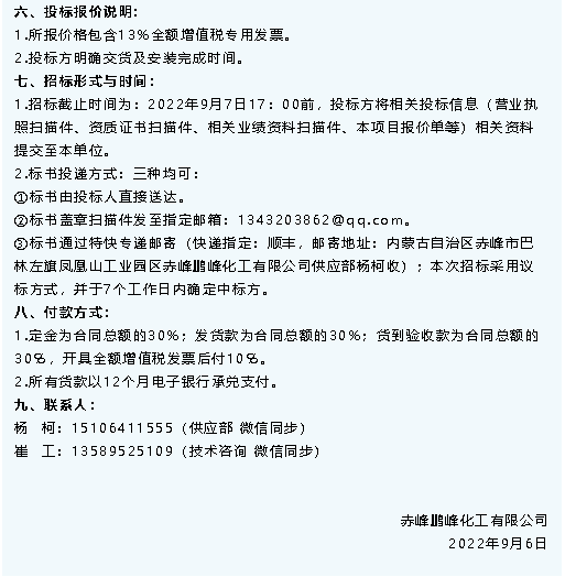 【招標(biāo)公告】鵬峰化工無水氟化氫運(yùn)輸、氣力輸送設(shè)備、有毒有害氣體報(bào)警器招標(biāo)