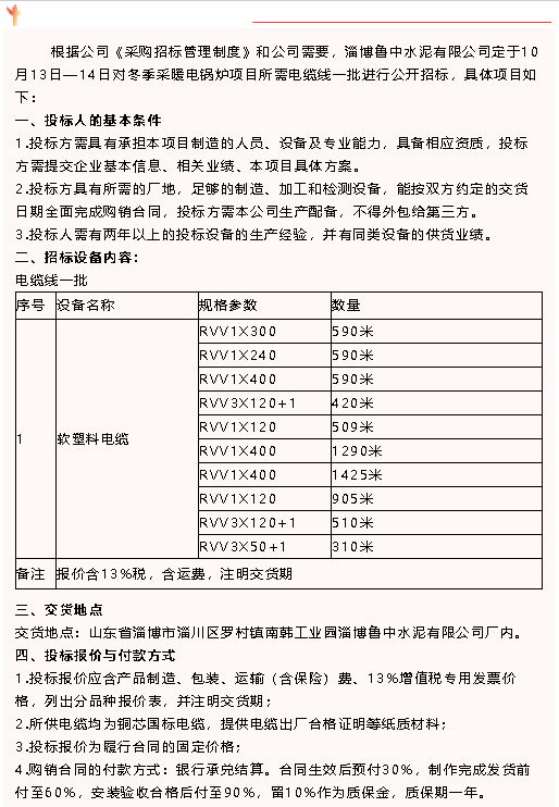 【招標(biāo)公告】魯中水泥
