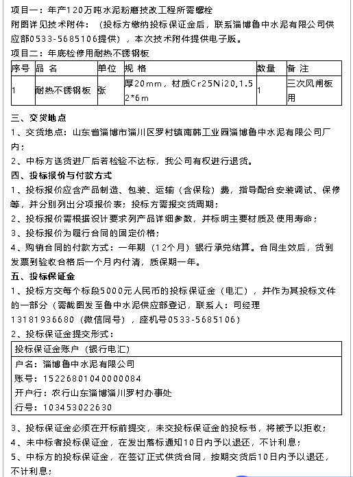 【招標(biāo)公告】重山集團(tuán)、魯中水泥