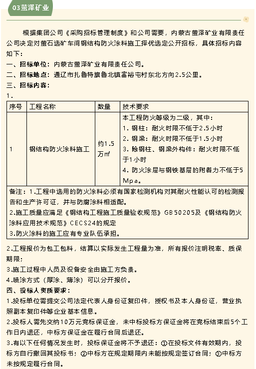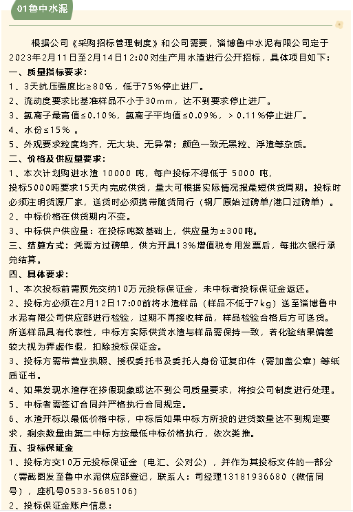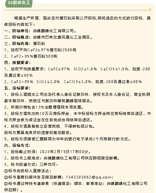 【招標(biāo)公告】魯中水泥、鵬峰化工、螢澤礦業(yè)