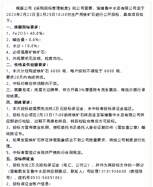 【招標(biāo)公告】魯中水泥