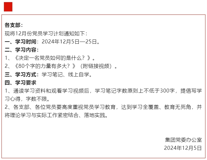 【通知】集團(tuán)黨委12月份學(xué)習(xí)通知