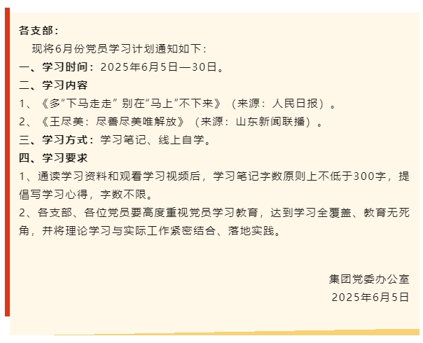 【通知】集團(tuán)黨委6月份學(xué)習(xí)通知
