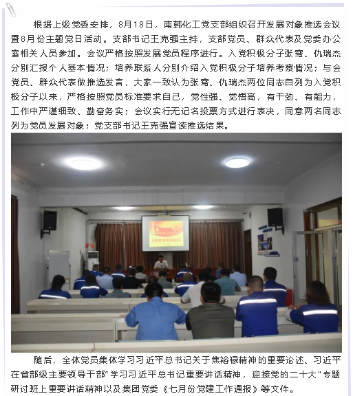 【黨建】南韓化工黨支部召開發(fā)展黨員推選會議