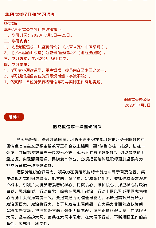 【通知】集團黨委7月份學(xué)習(xí)通知