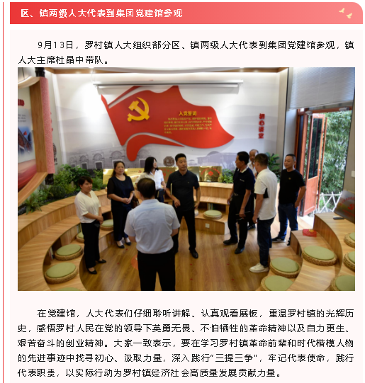 【黨建】區(qū)、鎮(zhèn)兩級(jí)人大代表到集團(tuán)黨建館參觀、集團(tuán)機(jī)關(guān)黨支部召開支委擴(kuò)大會(huì)